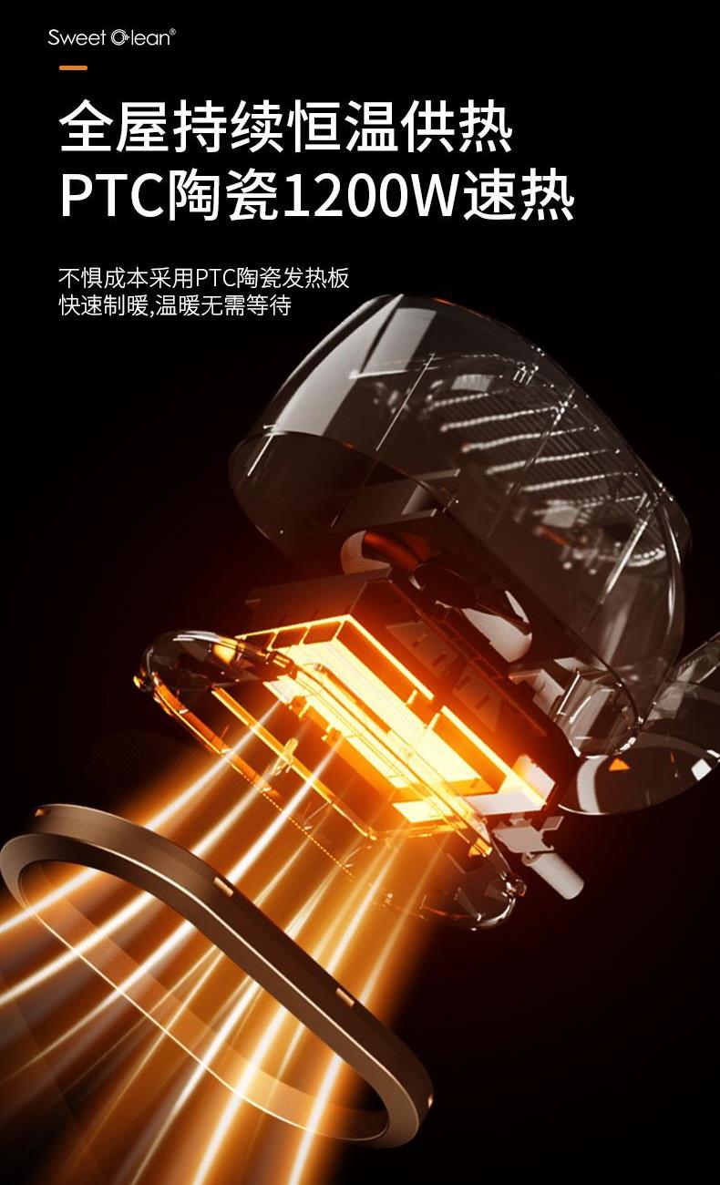 PTC 陶瓷 1200W 強(qiáng)速制熱:大功率陶瓷發(fā)熱體,開機(jī)即熱不等待,快速驅(qū)散寒意,暖感直達(dá)全身?