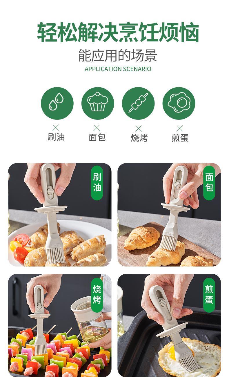 即是油刷也是防塵蓋,二合一,更省心,一頭兩用,蓋上蓋子能阻擋灰塵和細(xì)菌,直接水洗清洗無(wú)憂