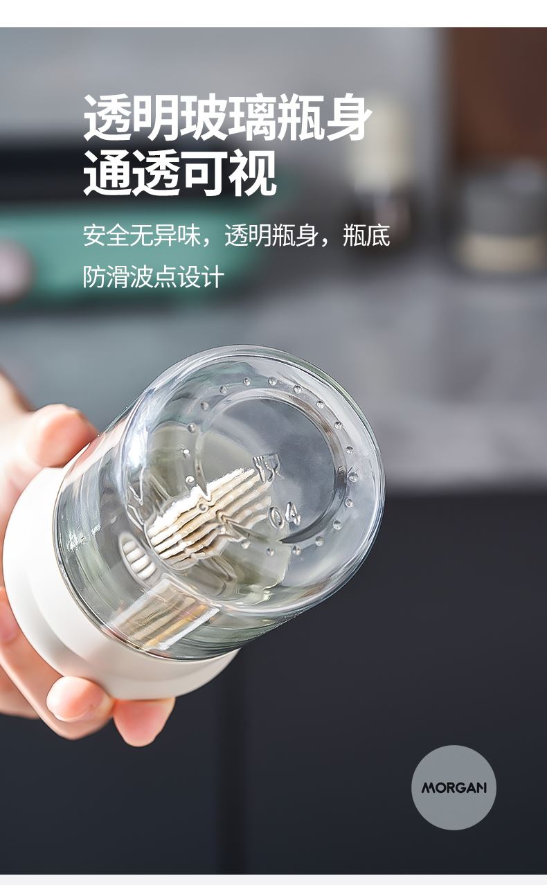 透明玻璃瓶身通透可視安全無(wú)異味,透明瓶身,瓶底防滑波點(diǎn)設(shè)計(jì)